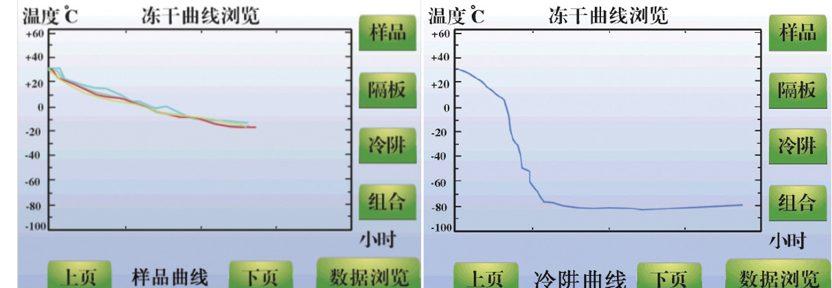 中文界面,能夠以曲線顯示樣品溫度、冷阱溫度、真空度等工作參數;